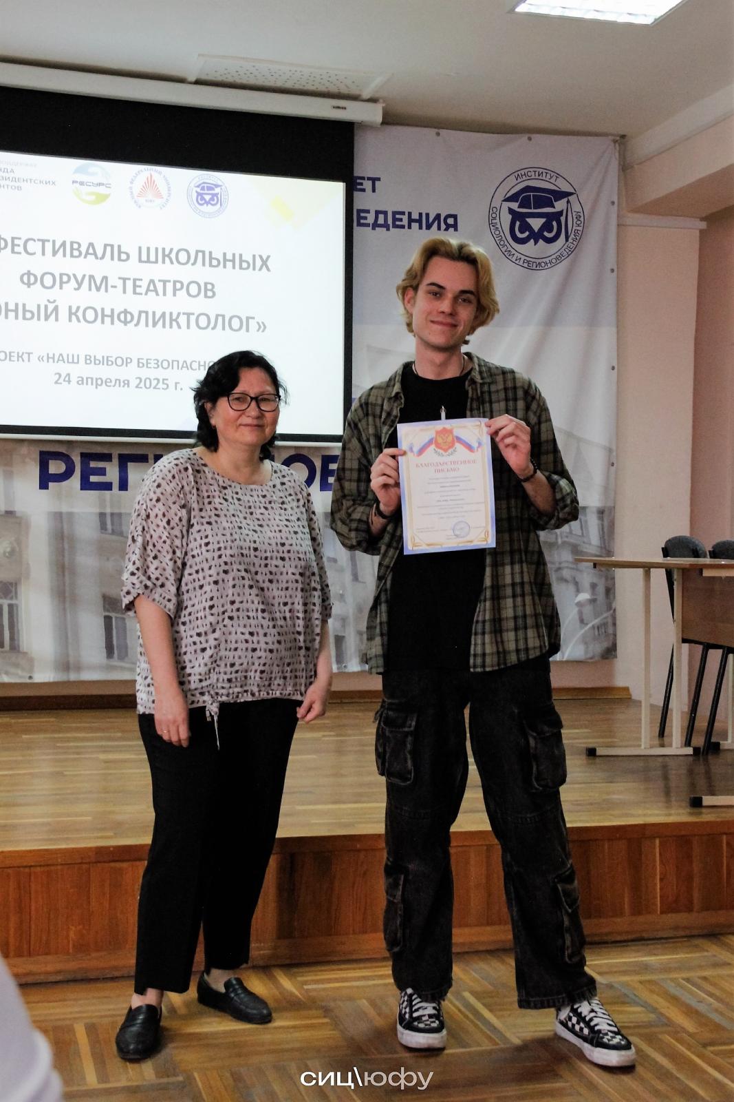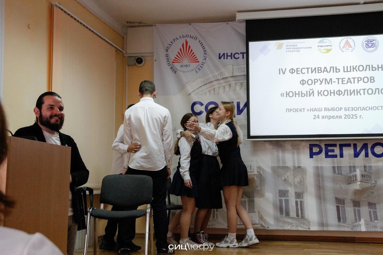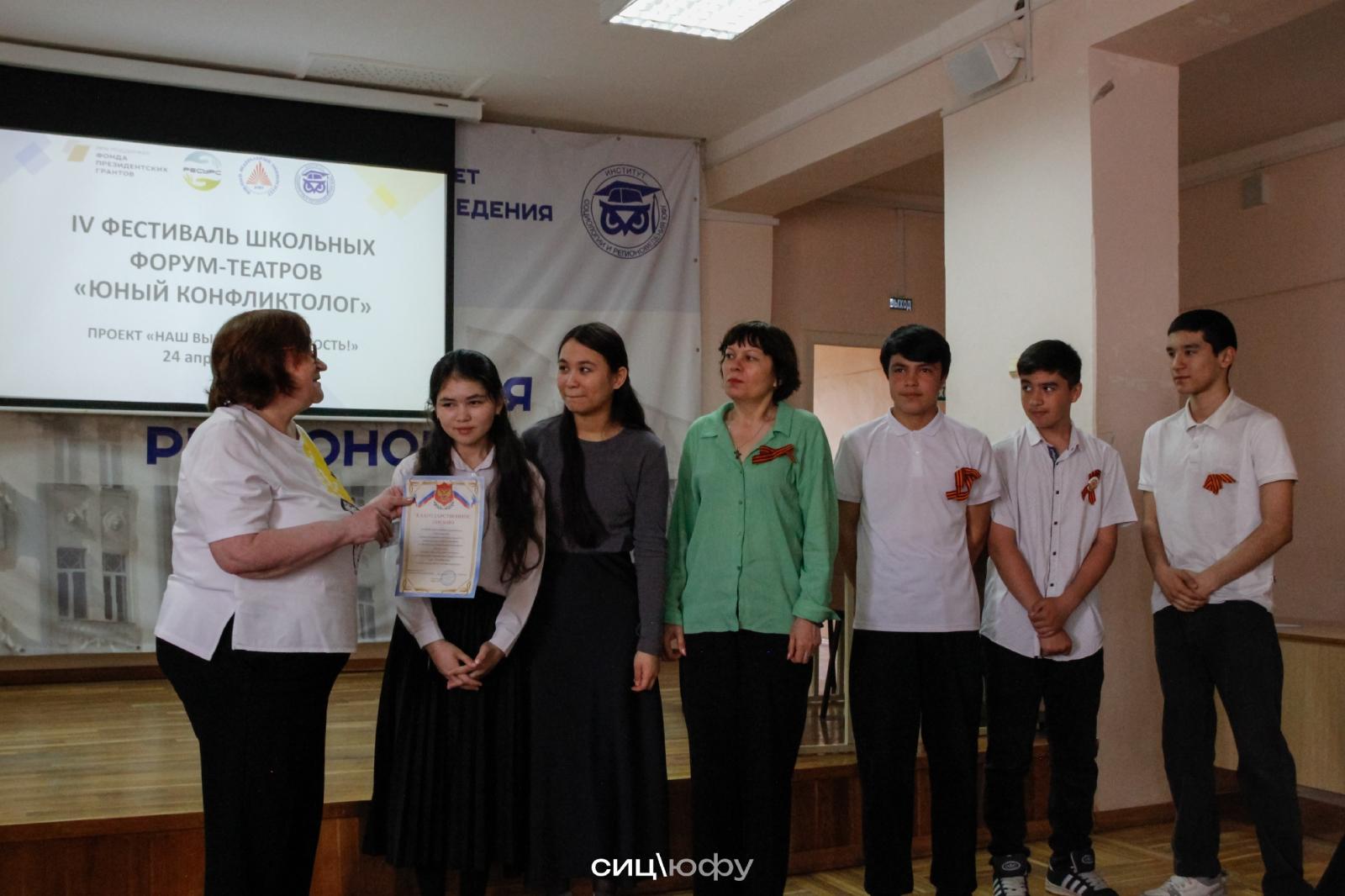 Интерактивные занятия со школьниками завершились Фестивалем форум-театров, где были подведены итоги работы за весь период реализации проекта. Праздничная атмосфера, коллективное представление интерактивных сценок по мотивам тем, представленных в ходе реализации проекта, общение учеников из разных школ, вкусные угощения - то, что особенно запомнилось детям и специалистам. Фестиваль прошел в двух локациях: г. Ростов-на-Дону (Института социологии и регионоведения Южного федерального университета), и г. Азов (Школа 11). В торжественной остановке были заслужено награждены самые активные участники и вручены памятные призы. Фестиваль стал значимым мероприятием для жизни города и объединил всех неравнодушных людей, заботящихся о качестве жизни подрастающего поколения. Специалисты организации поделились итогами проекта, продемонстрировали самые интересные моменты работы детей, а приглашённые гости провели мастер-классы по безопасному поведению и пригласили детей к дальнейшему сотрудничеству. В общей сложности в фестивале приняли участие 113 человек. Подведены итоги профилактической и просветительской работы с детьми и подростками. Продемонстрирована командная работа волонтёров-наставников и подростков.